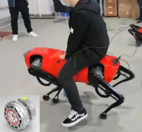 全電驅動12自由度大型仿生機器人關節(jié),單電機功率6kW,峰值扭矩1200Nm,輸出轉速120rpm,單電機重量10kg.